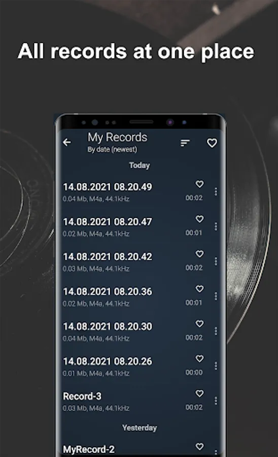 Use it for record dailly conversation, voice memo, music, song, internal game sounds or instruments. It can use both to record internal audio and Voice recorder.