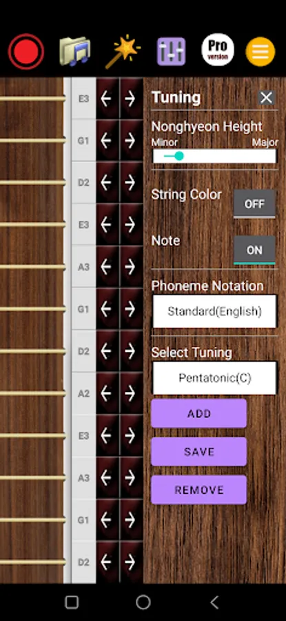 - 5 tuning types: Pentatonic, Eb-Major, Bb-Major, F-Major, C-Major