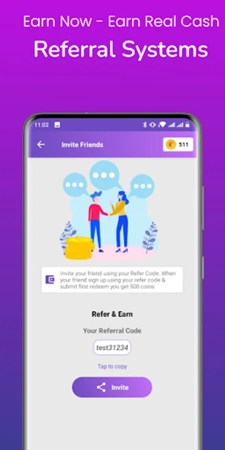 Sharing the app with your friends can also reward you with additional coins. Share the app with your friends and family, and don't forget to share it on your social media platforms. You are encouraged to use your referral code when sharing.
