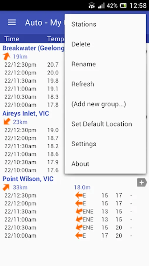 Create your own weather station groups or view your closest stations on a single screen using Australian Bureau of Meteorology weather station readings.