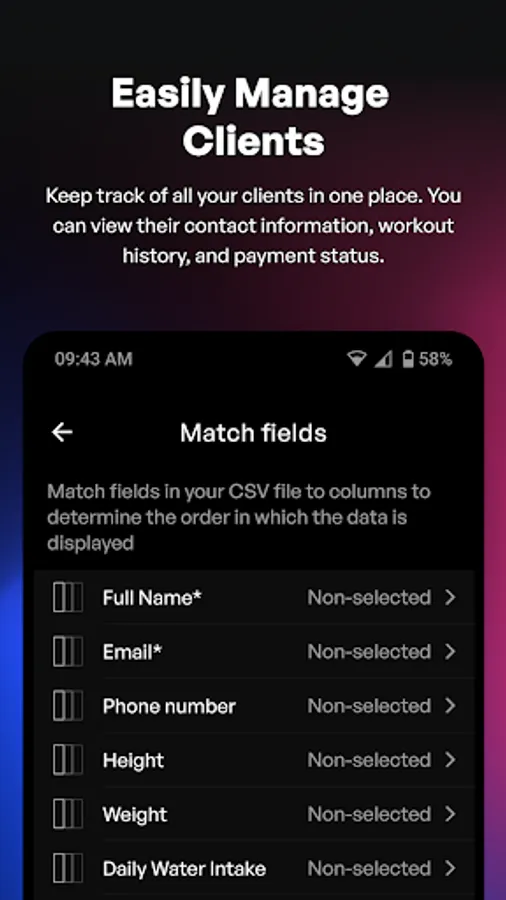 It all starts with adding your clients to the app, consider it a simple yet effective CRM. You could use the CSV upload functionality or create client profiles one by one manually. In PUMPD you will be able to track all the important information from the client: