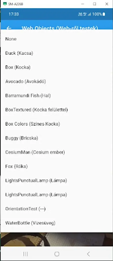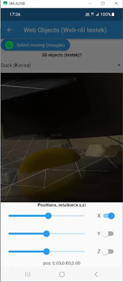 AR scene with buttons to place GLB objects from the internet at a given position, rotation and scale. Additional buttons allow to modify position and rotation X direction, Y,Z under construction with regard to the world origin after objects have been placed with finger.