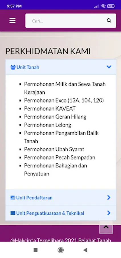 Pelanggan boleh mengakses maklumat berkenaan urusan yang boleh dilakukan di Pejabat Tanah Dan Jajahan Pasir Mas