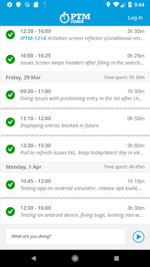 8. Pull to refresh: refreshes cached activities, entries, and issue ids to easily synchronize with the server.