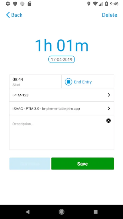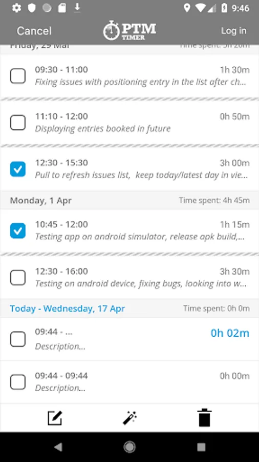 1. Start and stop a timer and fill in the missing information when it's convenient: upfront, during or some time after. You can have multiple non-filled-out entries at any given time.