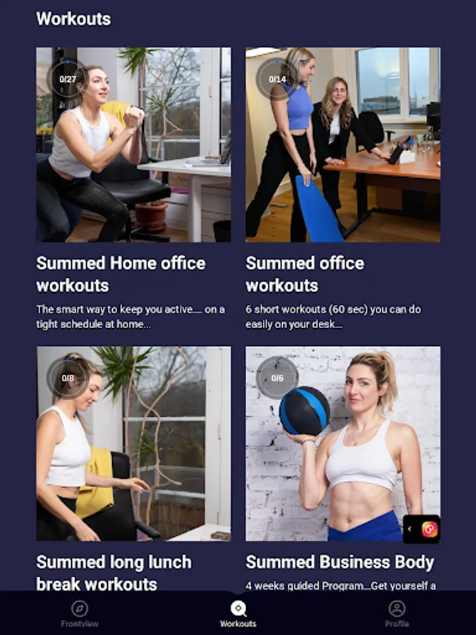This App is developed for people sitting infront of the computer all day long, either at home or at the office. "Summed" keeps you active, without losing much of your time. Do you have back pain? Or just feeling bad sitting all day long...???Join our community, track your workouts & check out the unique content that help you level up your fitness. Installing the app is free of charge.