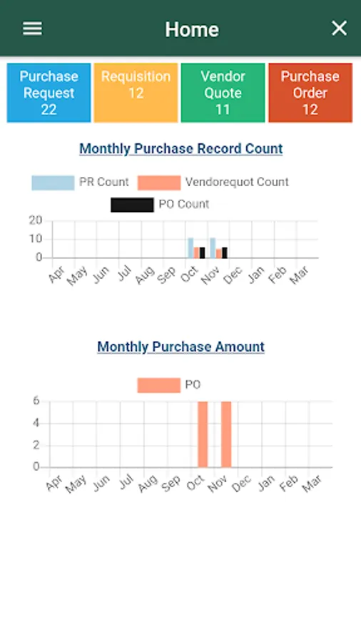 ERP for Purchase Module with Monthly Dashboard Functionality, vendore wise data