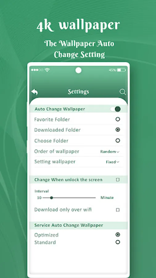 - This features changes Mobile Desktop Background Automatically. User can choose time frequency to change Wallpapers Automatically.