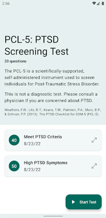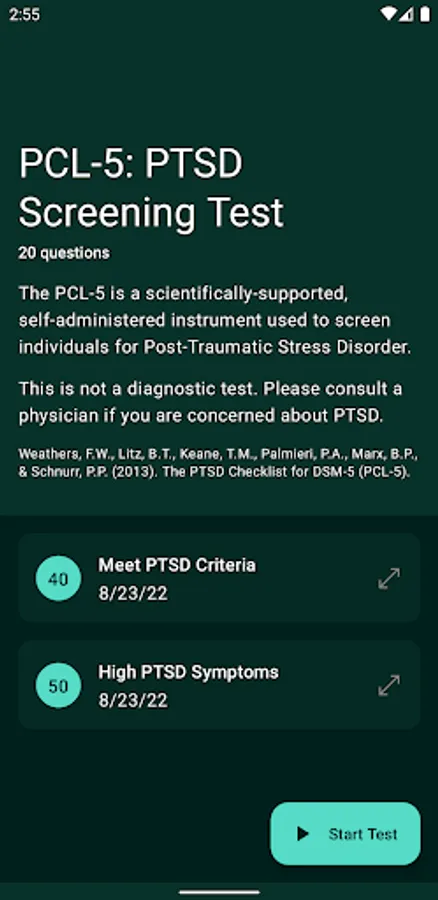 - Start Test: take the PCL-5 to assess your PTSD symptoms