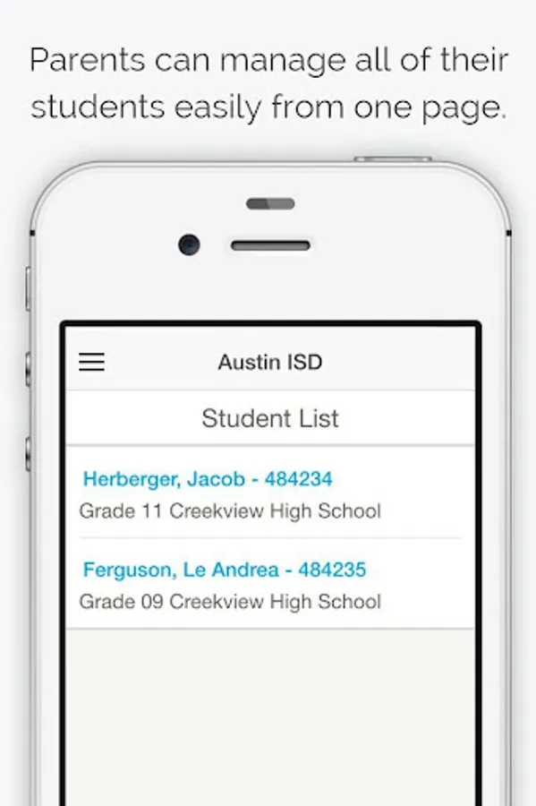 • Students and parents can access grades, attendance and more. Parents can switch between children.