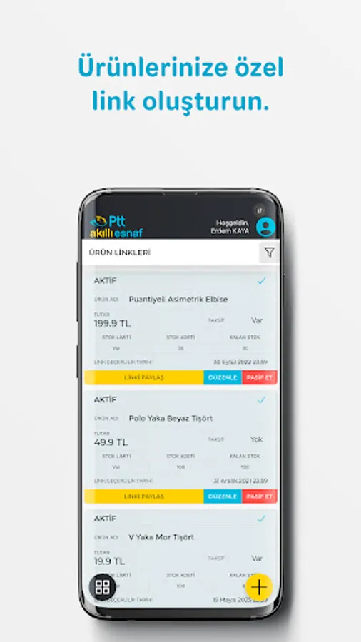 With the PTT Smart Trades application, you can create a special payment link for your customers, share the link you created with your customer without the need for traditional methods such as EFT, money order or payment at the door, and start receiving your payments with one click and without the need for any integration.