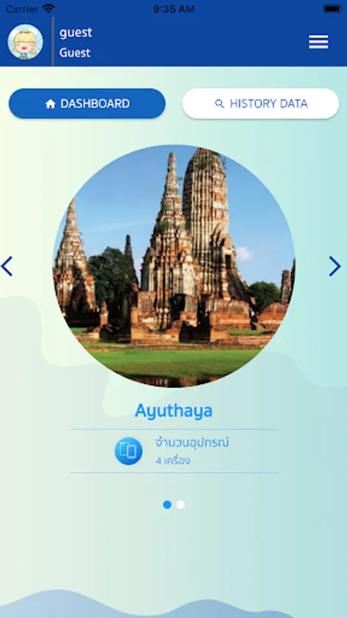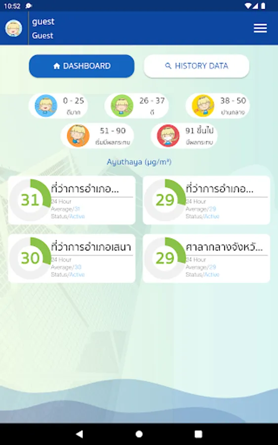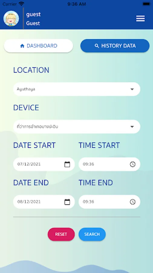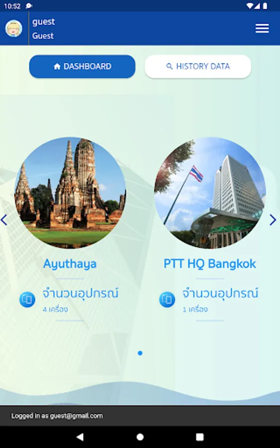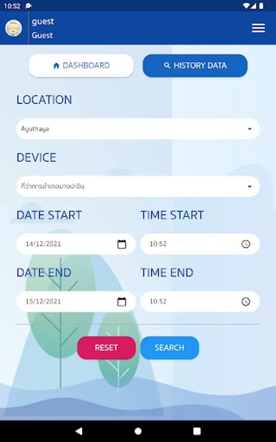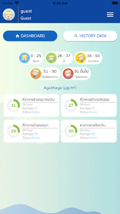 สามารถเรียกดูค่าผลตรวจวัดคุณภาพอากาศ (PM 2.5) ที่ติดตั้งเครื่องตรวจวัดไว้ตาม Location ต่างๆ แบบ Realtime และ ย้อนหลังได้ โดยจะแสดงผลในรูปแบบกราฟและตัวเลข รวมถึงสามารถ Export ข้อมูลรายงานผลตรวจวัดคุณภาพอากาศในรูปแบบ Excel file & PDF file ได้
