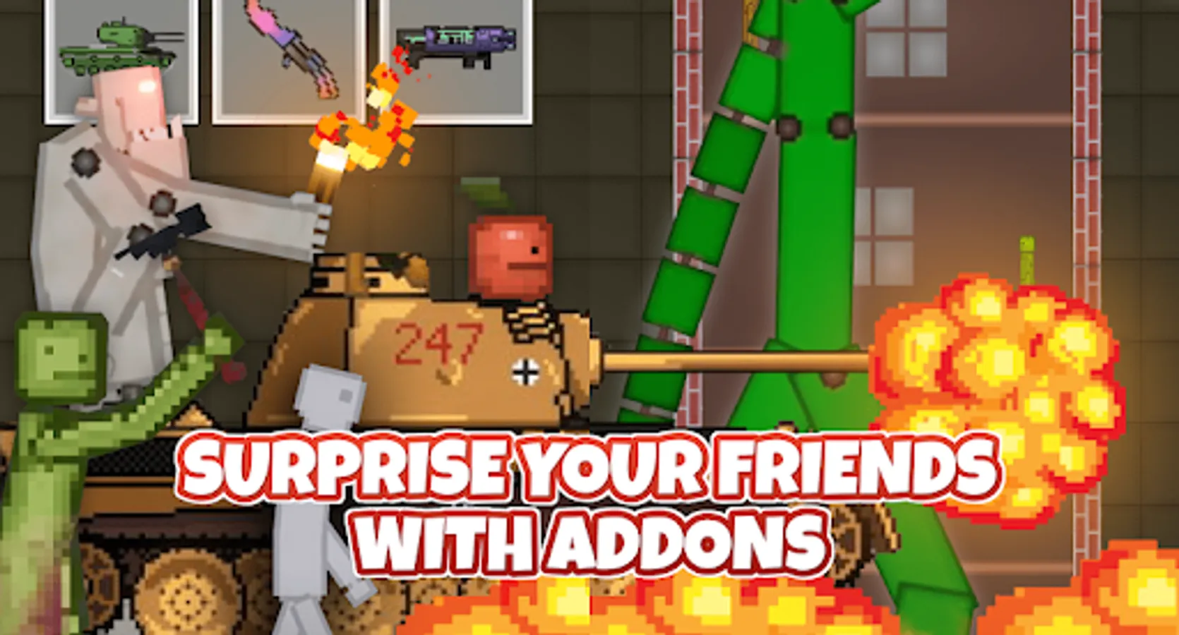 Mods For Melon Playground large room with unlimited freedom of action, experimental physics and an impressive collection of tools, characters and landscapes. You can do whatever you want with our variety of mods. With our Melon Playground Mods, you can make the most of your creativity. The game area gives the player a variety of choices to create different character breakdowns between items. No matter where you are in the room, you will be part of a grand experiment with car crashes, tanks and weapons, dinosaurs appearing, big buildings with tons of stuff. We have collected the most interesting mods on different topics, such as: weapons, animal mods, car mods, furniture, tanks and engineering, different buildings , etc. You have the ability to own many unique weapons to take down random obstacles.