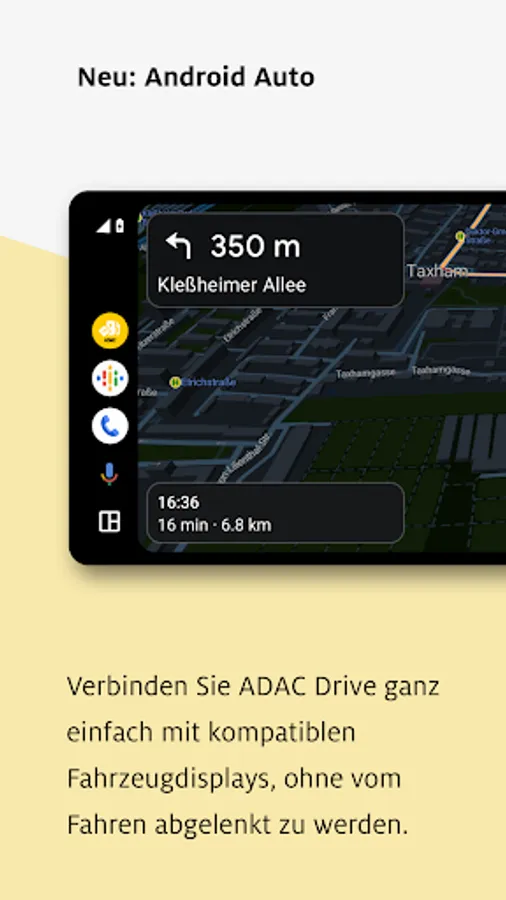 - Easily connect to compatible vehicle displays with Android Auto without being distracted from driving. Search for destinations or call up favorites and routes and start navigating.