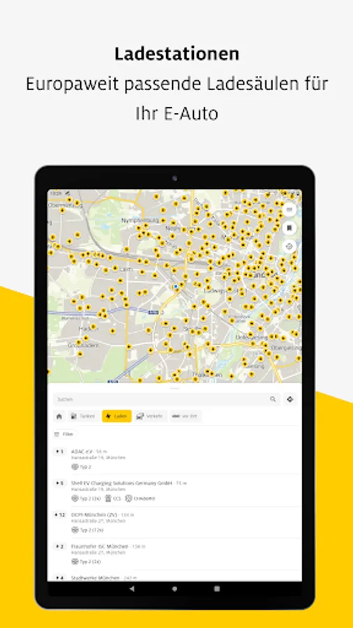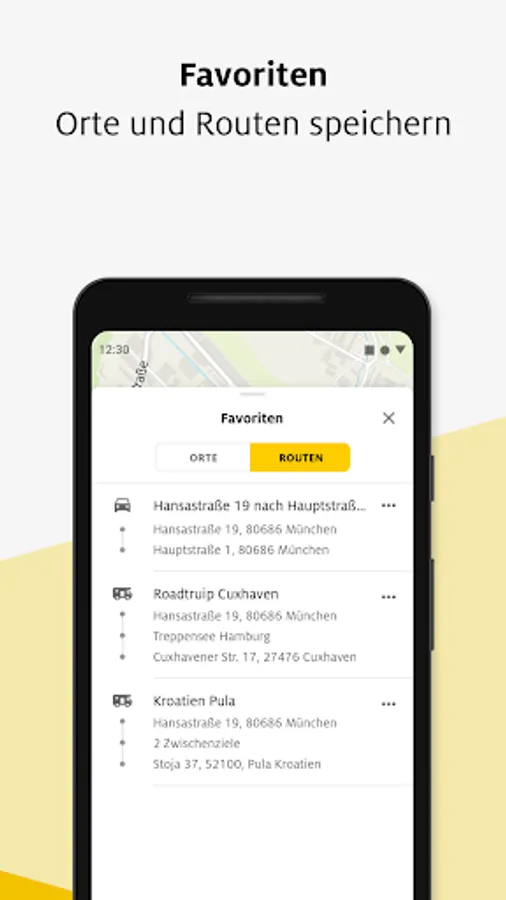- Save favorites and routes across devices via ADAC login - even from ADAC Maps!