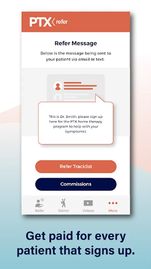Get paid for referring your patients to PTX Therapy. You know and love PTX, and now you can share it with your patients. Send your personal referral link automatically via text or email with one click.