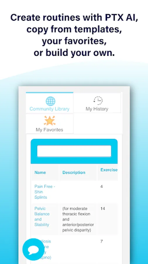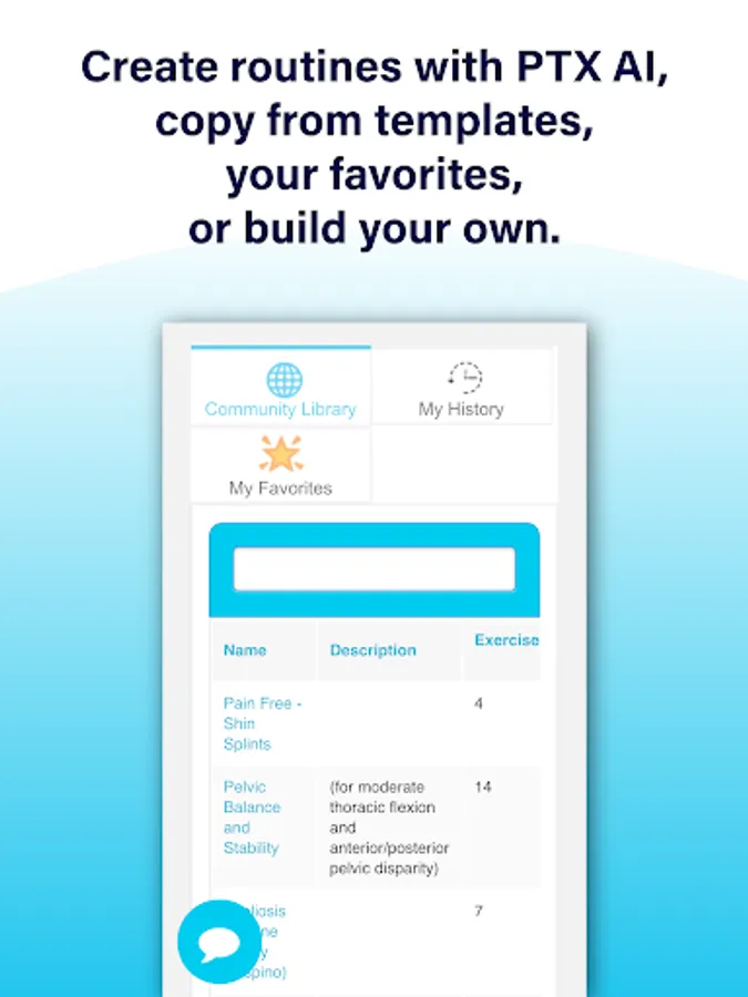 3. Learn from and browse pre-made routines for specific sports, posture deviations, or pains; created by our community of PTX therapists, copy and paste into your own client accounts at any time.