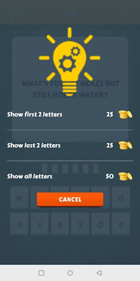 Each correct answer or a correct choice will give you 10 coins. You can use the coins to use lifelines like Hints (in Riddles and Picture Riddles) and 50-50 (in quiz and picture quiz). The last two levels (odd one out and true or false) have no lifelines and are most toughest to solve. Each incorrect answer will cost you 20 coins so be careful.