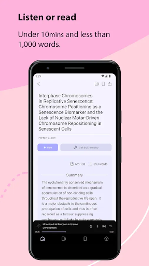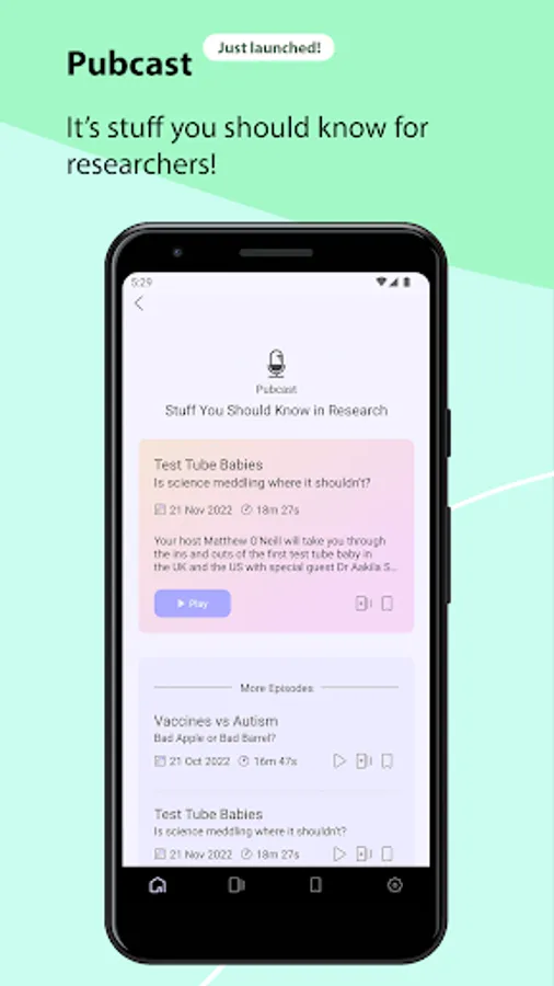 Provides a summarised form of journal articles in both audio and text with a human touch, all under a 10-minute listen or 1,000-word read. There are links to the full-text publications, and we do not change the meaning of anything, so it is just like you are at the source. We select only original research and open-source. Enjoy curated content by experts, monthly topic picks, a weekly feature that is FREE for all, and our newest content Pubcast with is a concise version of podcasts for researchers. Pubcast is about unearthing controversies, discoveries and addressing the uncomfortable topics in research. It's the stuff you should know as a researcher. Reading might be challenging or simply not enjoyable, but this productivity leisure app can accomplish both. Fit reading into your life regardless and become that alpha-nerd!