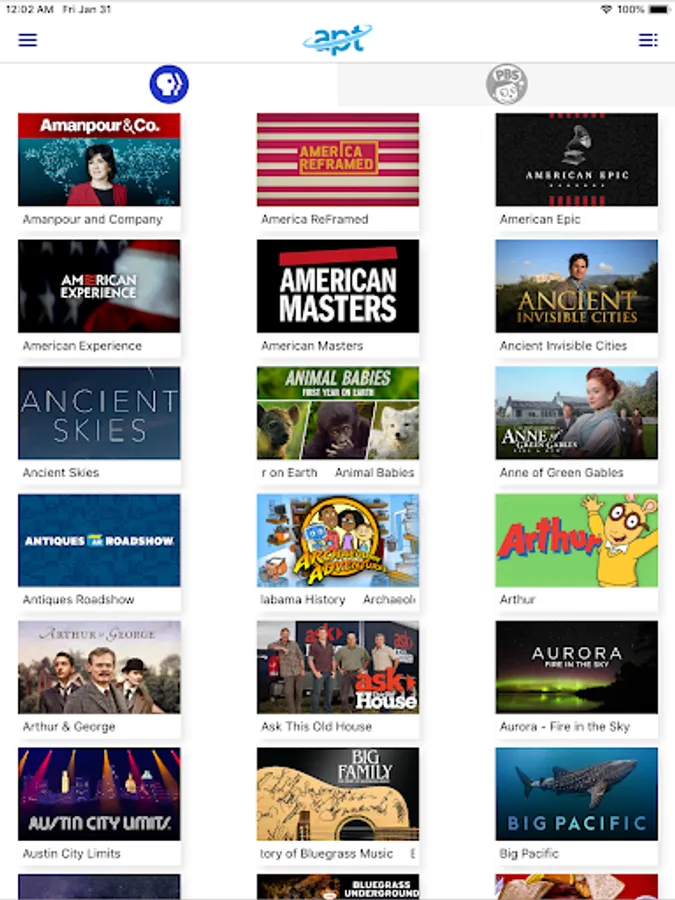 The Alabama Public Television App allows you to easily access all national , acquired, and local productions available from APT!