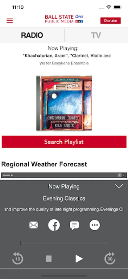 • The Ball State Public Media App displays the web page associated with the program or program segment you are listening to On Demand so you can explore for more information.