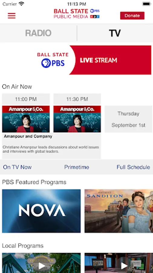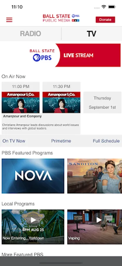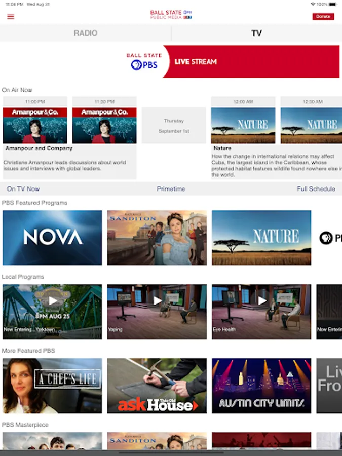 The Ball State Public Media App allows you to watch and listen to all of Ball State PBS and Indiana Public Radio programs!