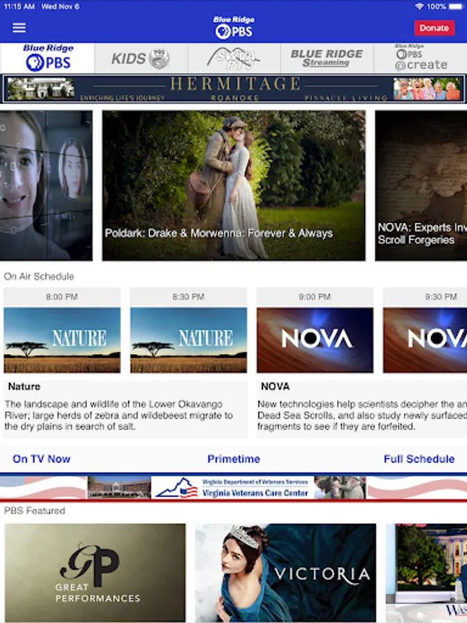 The Blue Ridge PBS App allows you to easily accessl national and local productions available from Blue Ridge PBS!