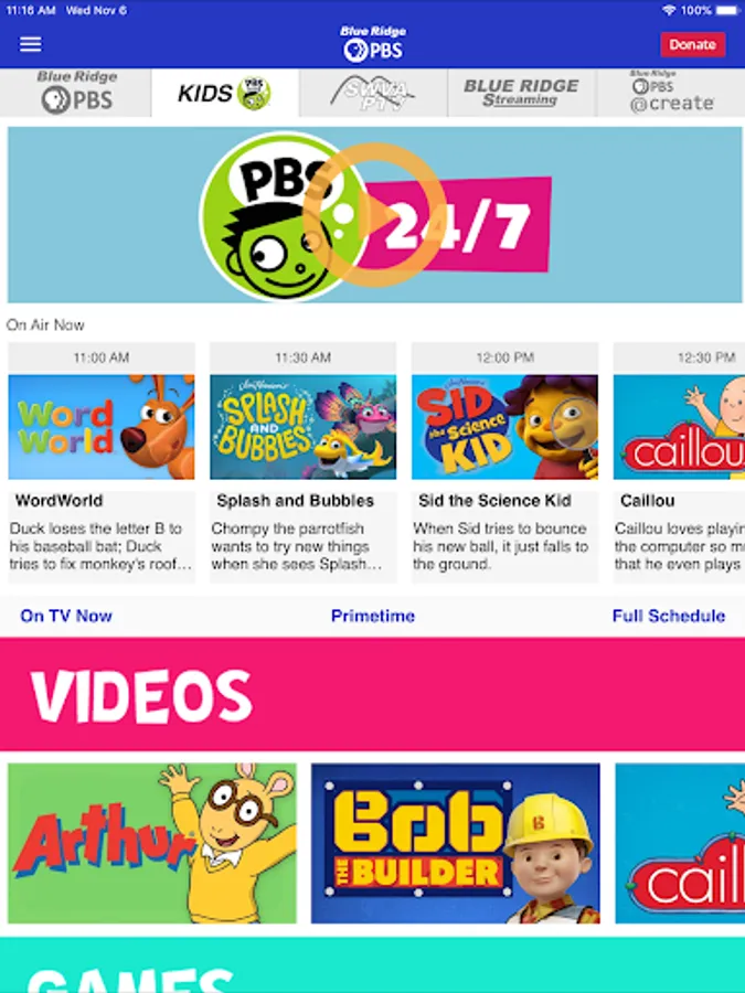 The app provides On-Demand content of your favorite shows, PBS Kids! content with parental controls, easy access to the TV program schedule plus the ability to explore additional content!