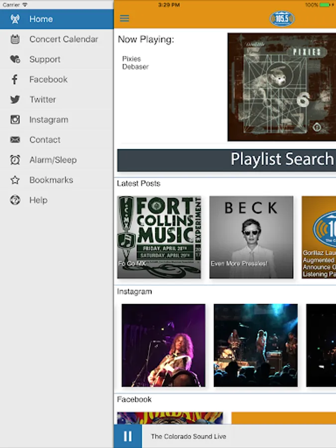 • Access Facebook, Twitter, Instagram and the Colorado Sound website!