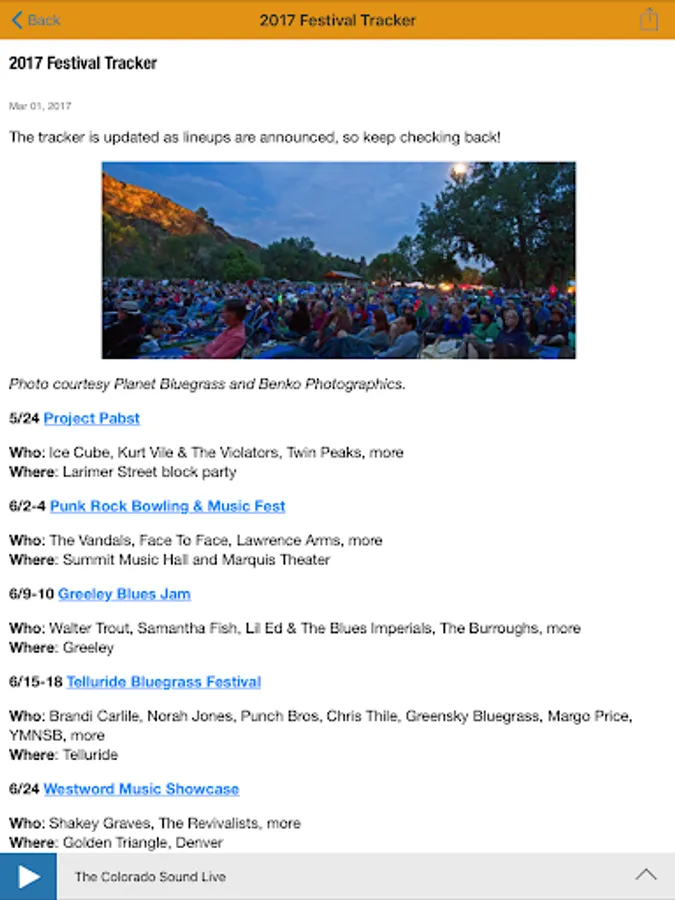 • Check out the Community Calendar and access the Colorado Sound playlist!