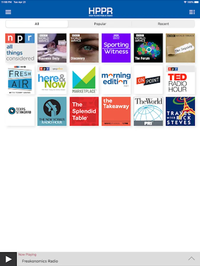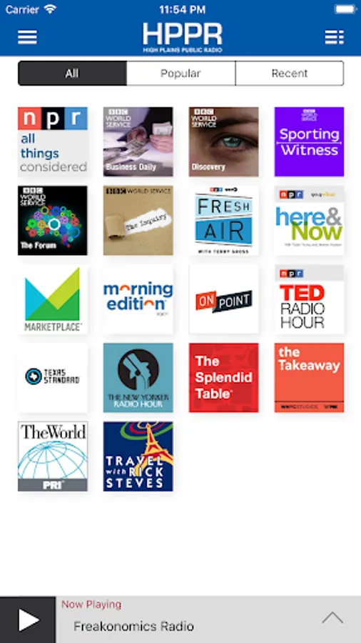 • Listen to live streams from HPPR even while traveling! Start the app and your favorite station starts playing.