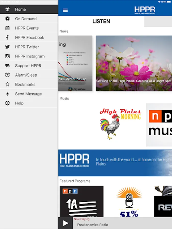 The HPPR App allows you to listen to HPPR, pause and rewind the live audio, and view the program schedule for HPPR all at once! You can explore and listen to On Demand content whenever you want, share stories with your friends, and wake up to HPPR with the alarm clock!