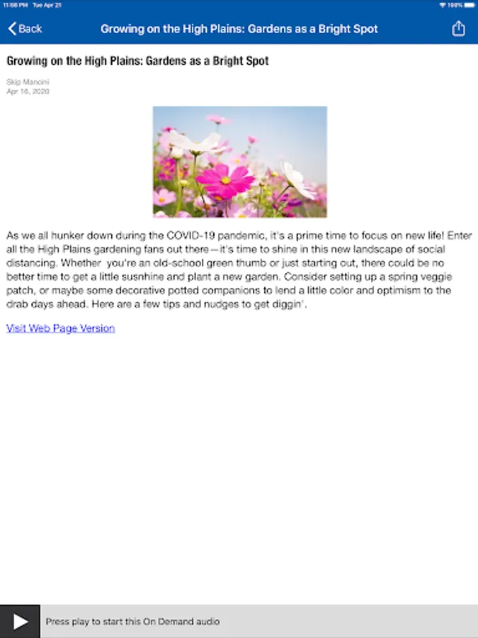 • The HPPR App displays the web page associated with the program or program segment you are listening to On Demand so you can explore for more information.
