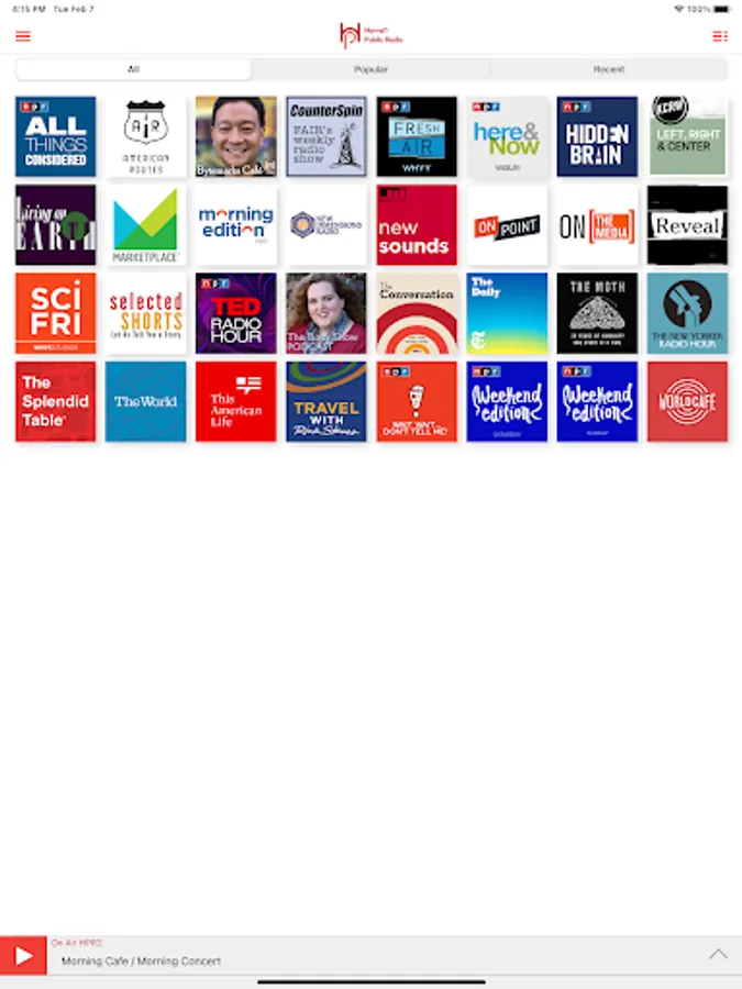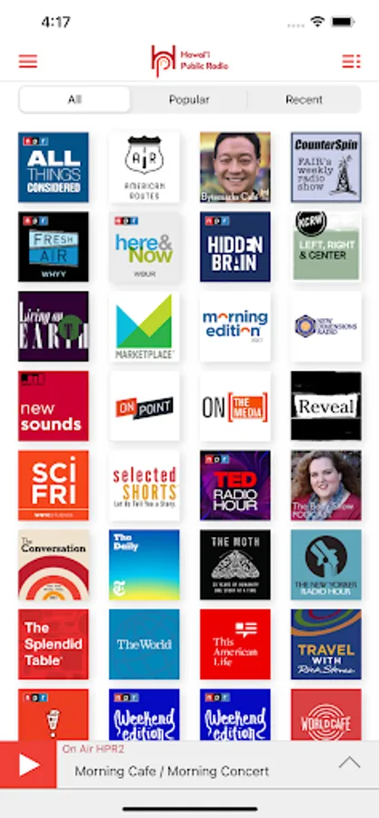 • Access public radio programs from multiple content providers (NPR, BBC and HPR) easily and quickly.