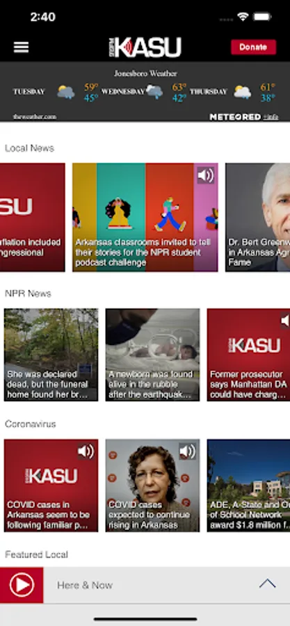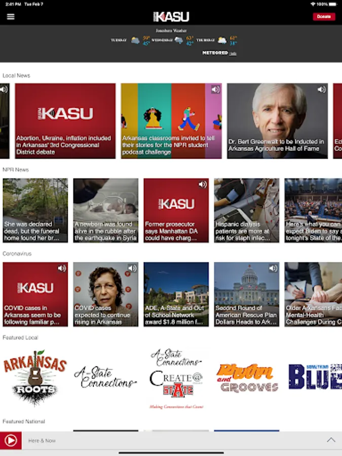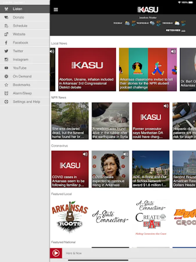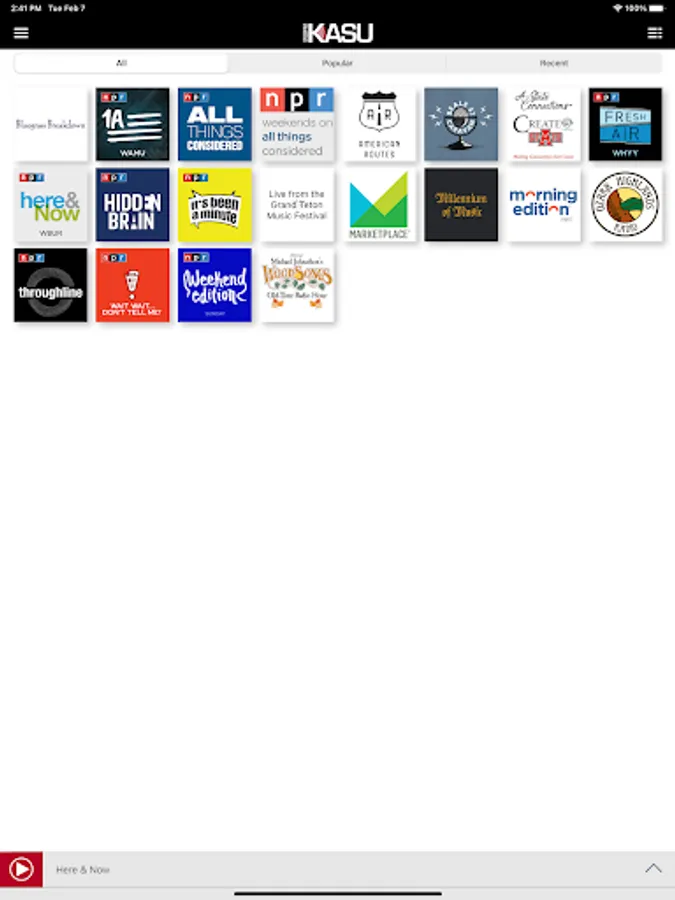 • Listen to live streams from KASU even while traveling! Start the app and your favorite station starts playing.