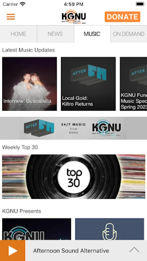 • One click stream switching – flip between KGNU, AfterFM, and our podcasts in an easy click!