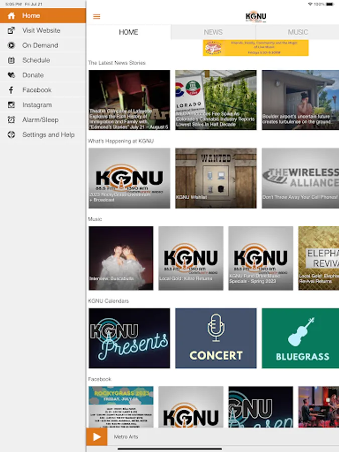 Our new mobile app allows you to listen to KGNU News & Music, pause and rewind the live audio, and view the program schedules all at once! You can explore and listen to On Demand content whenever you want, share stories with your friends and wake up to KGNU with the alarm clock!