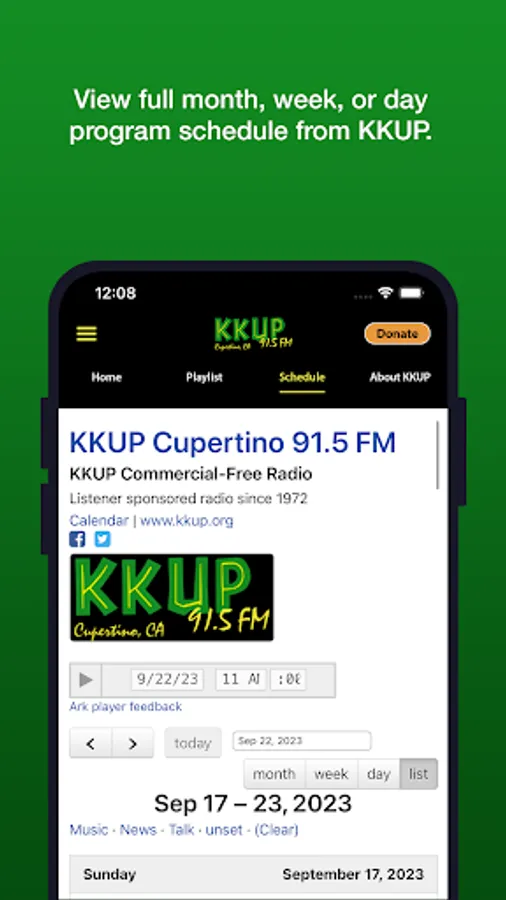 The KKUP App allows you to listen to the KKUP Radio 91.5 FM live stream, pause and rewind live audio, view the program schedule, and wake up to KKUP with the alarm clock!