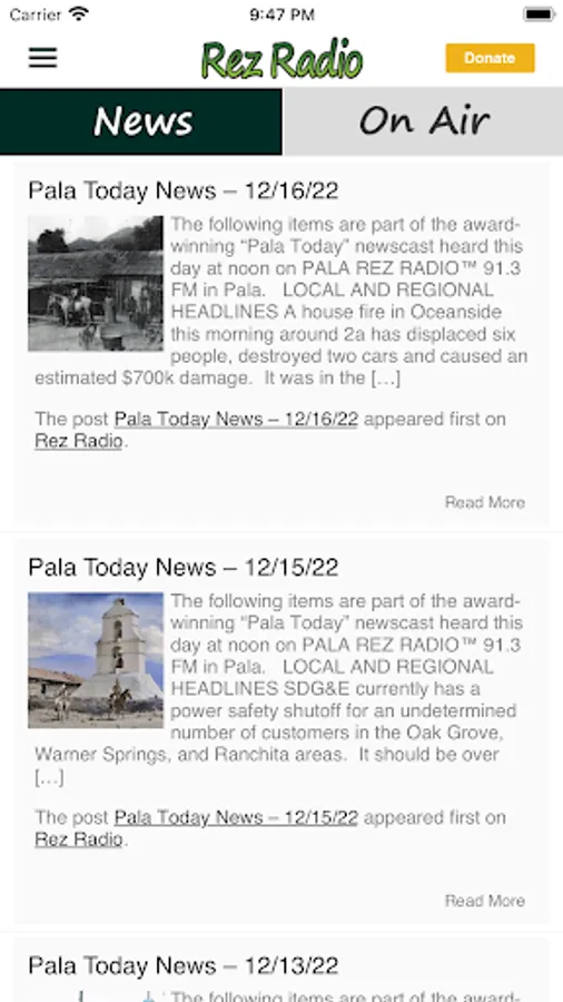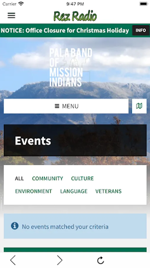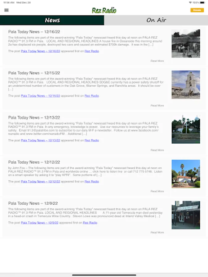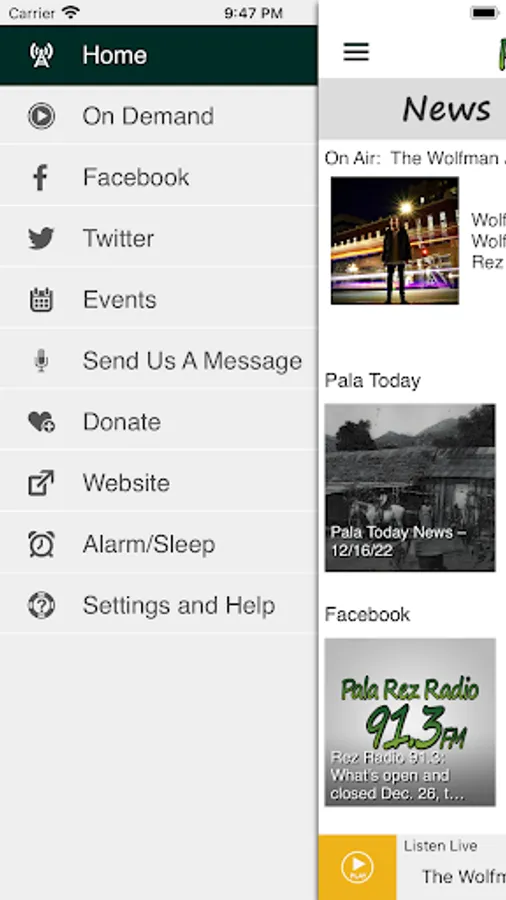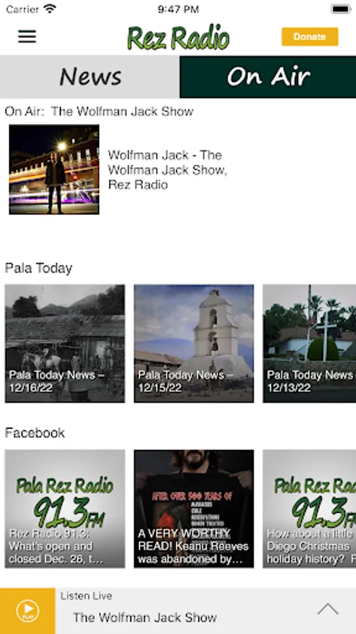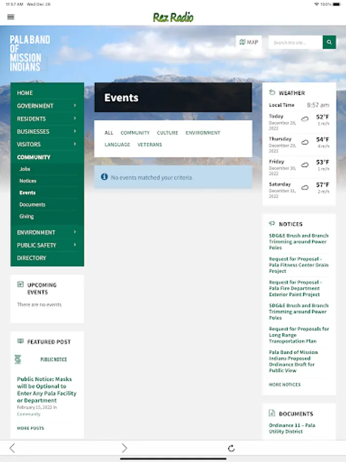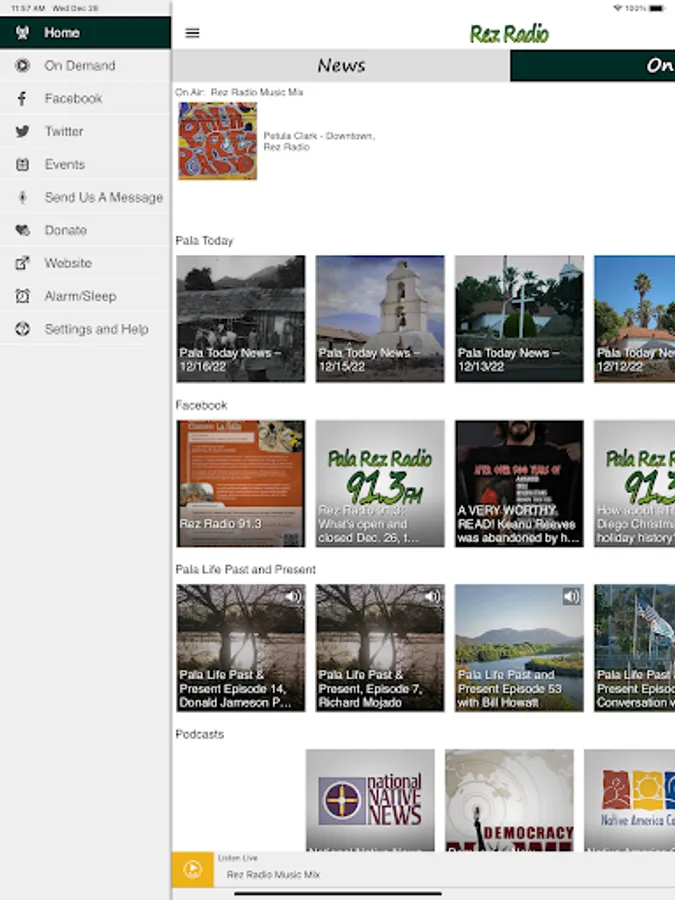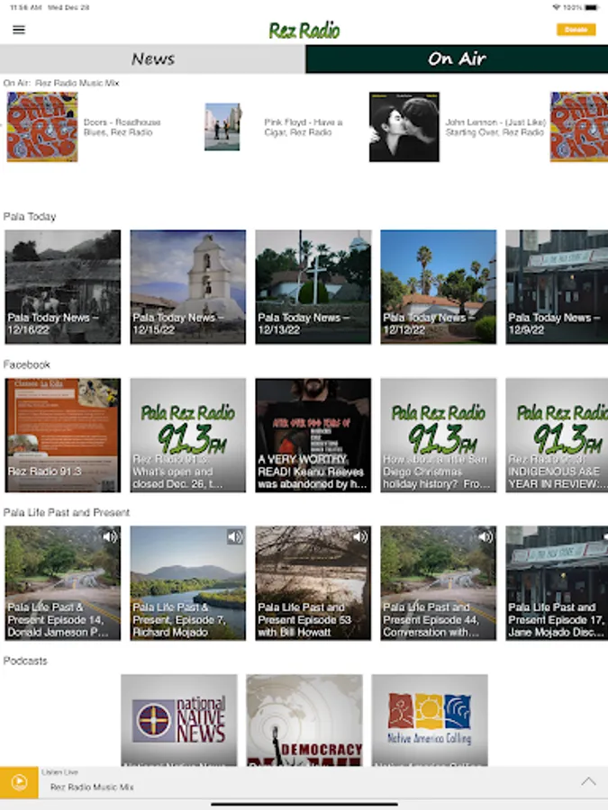 The free Rez Radio App allows you to listen to Pala’s Rez Radio 91.3, KPRI anywhere, direct from the source. Current news and events, Pala Today News at Noon transcripts, Rez Radio show podcasts, and voice messaging available. You might hear your comments played back on Rez Radio. Links to all our social media platforms, show schedules and information, show host profiles. Programming ranges from freeform music including classic rock, country, reggae, soul, blues, pop, and oldies, locally produced news, talk from the Native Voice 1 and Pacifica Networks, syndicated shows including Wolfman Jack, the Flower Power Hour, Floydian Slip, and Dead Air.