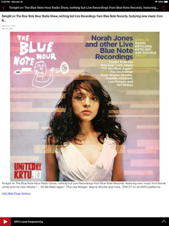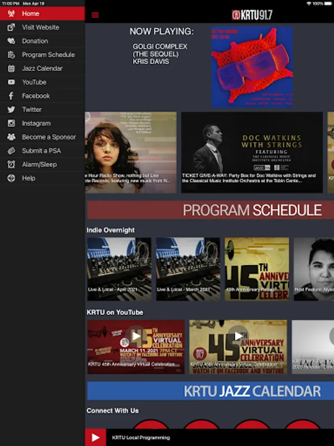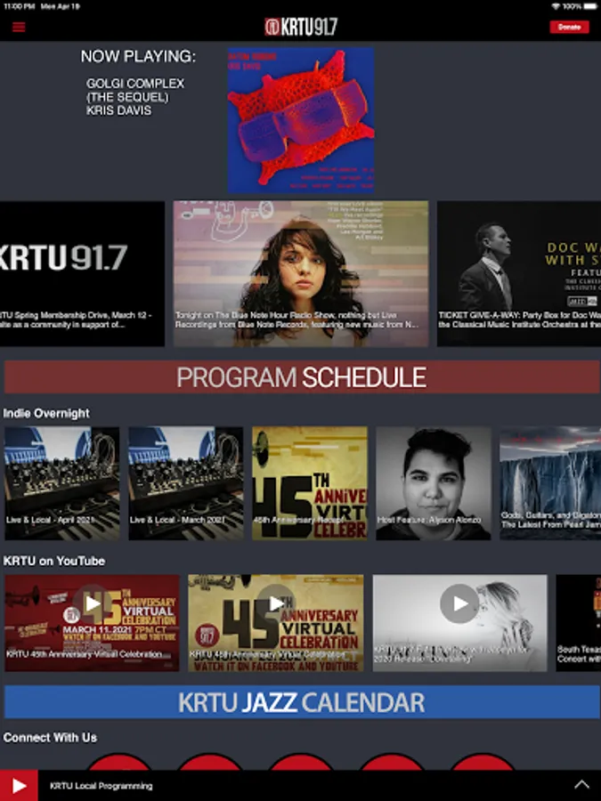 Our new mobile app allows you to listen to KRTU 91.7, pause and rewind the live audio, and view the program schedules all at once! You can explore and listen to KRTU whenever you want, check out upcoming events, share stories, and wake up to KRTU with the alarm clock!