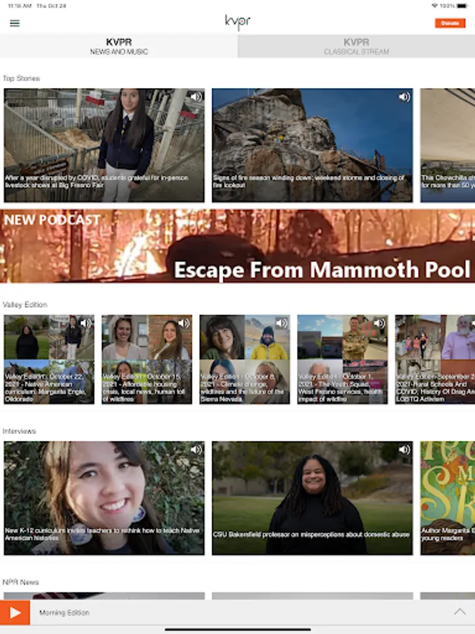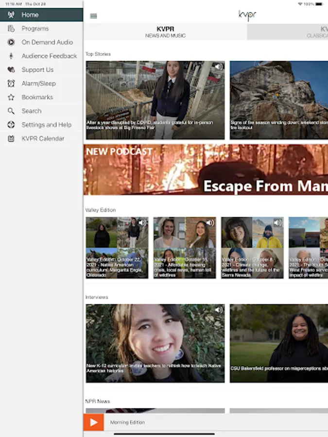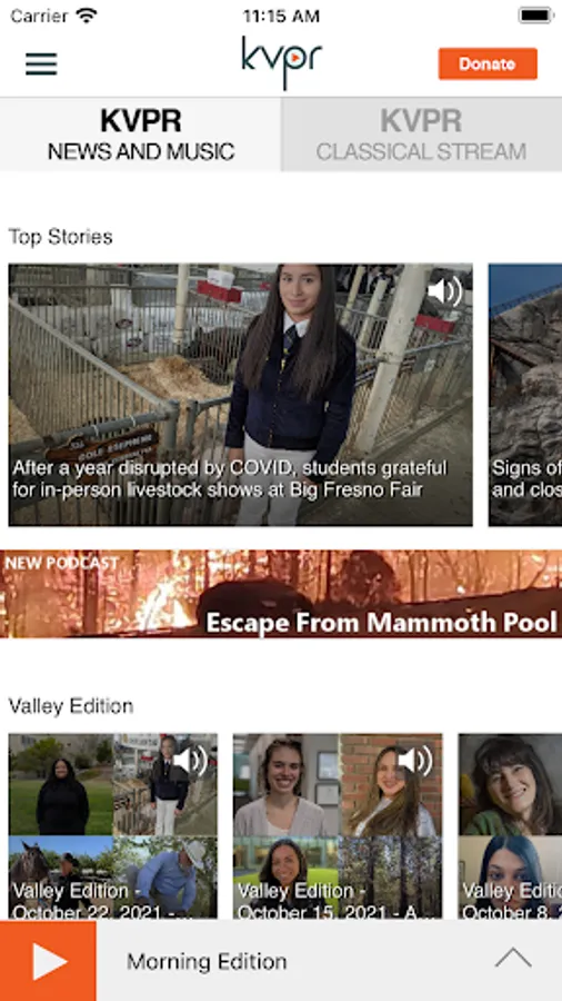 The Valley Public Radio App allows you to listen to KVPR, pause and rewind the live audio, and view the program schedule for KVPR all at once! You can explore news stories, On Demand content, bookmark a program for later, and wake up to Valley Public Radio with the alarm clock!