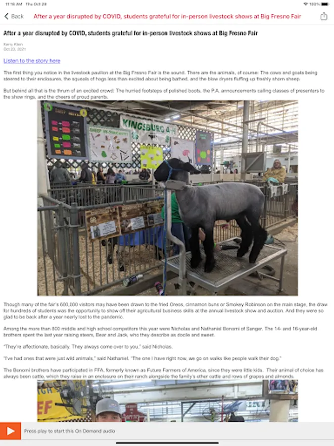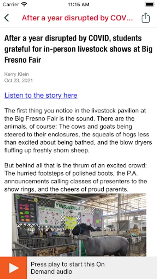 • Listen to live streams from Valley Public Radio even while traveling! Start the app and your favorite station starts playing – no clicks to start listening.
