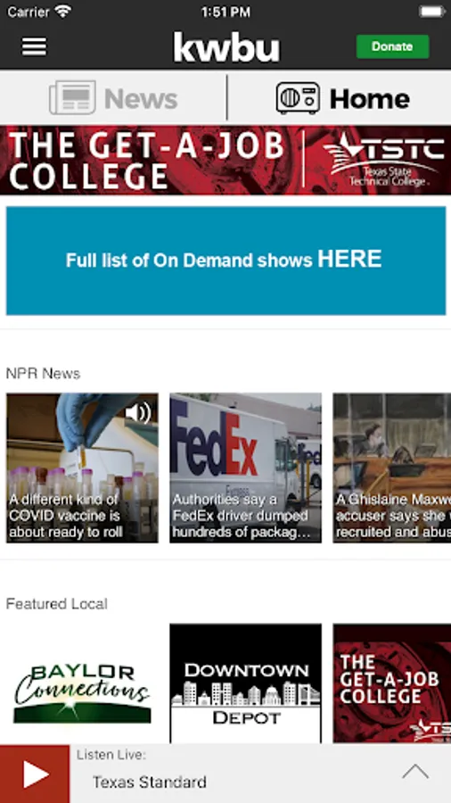 • The KWBU Public Radio App displays the web page associated with the program or program segment you are listening to On Demand so you can explore for more information.