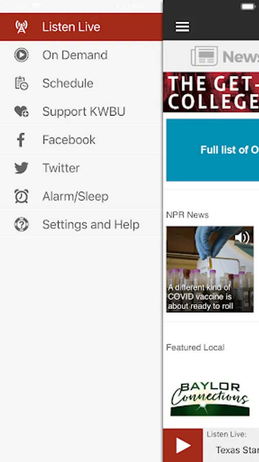The KWBU Public Radio App allows you to listen to KWBU, pause and rewind the live audio, and view the program schedule all at once. You can explore On Demand content and wake up to KWBU with the alarm clock.