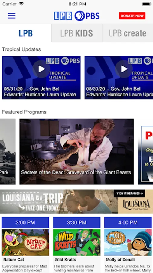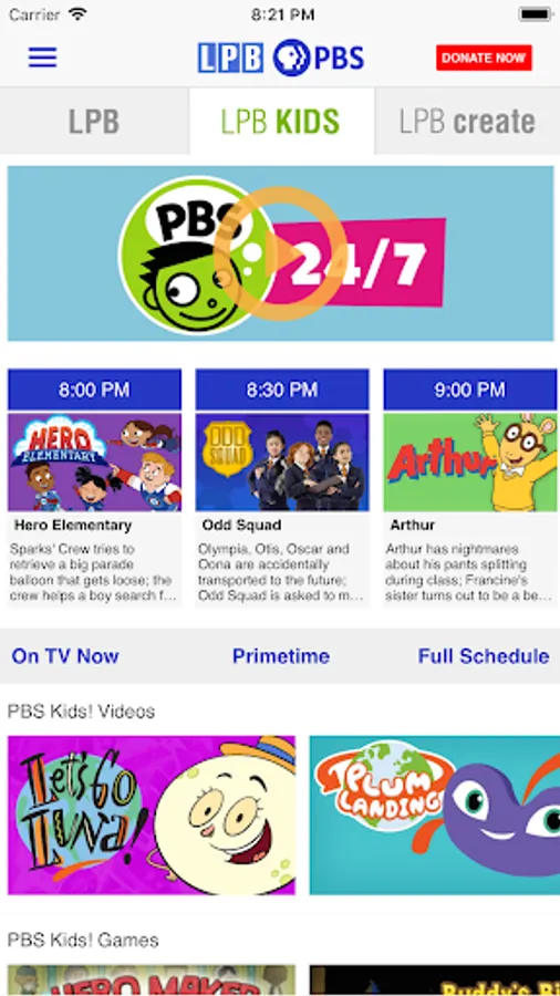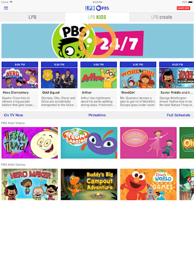 • Integrated TV program schedules of LPB, PBS Kids!, and Create.