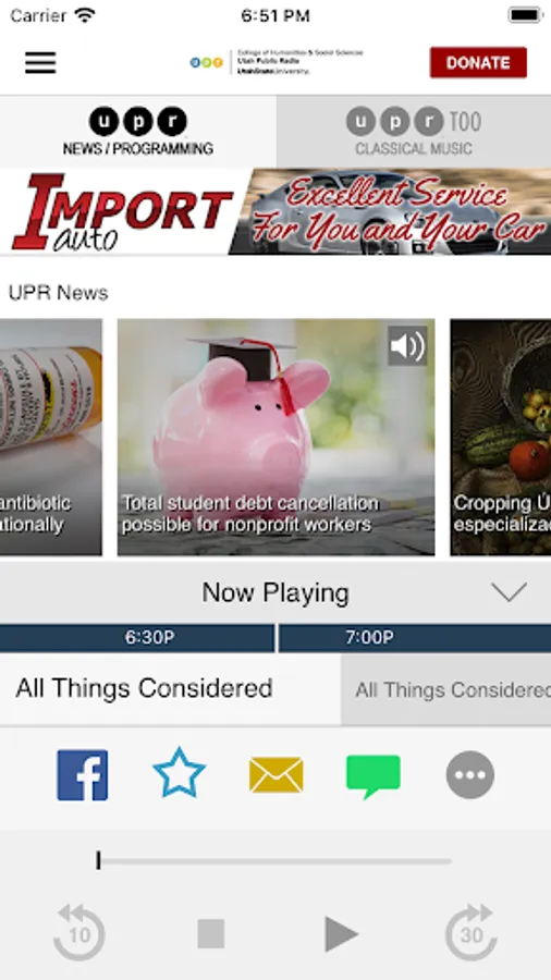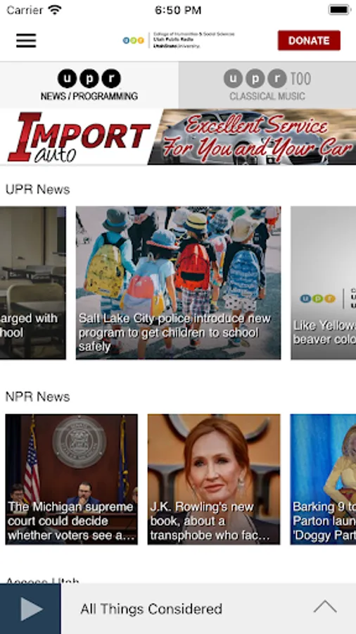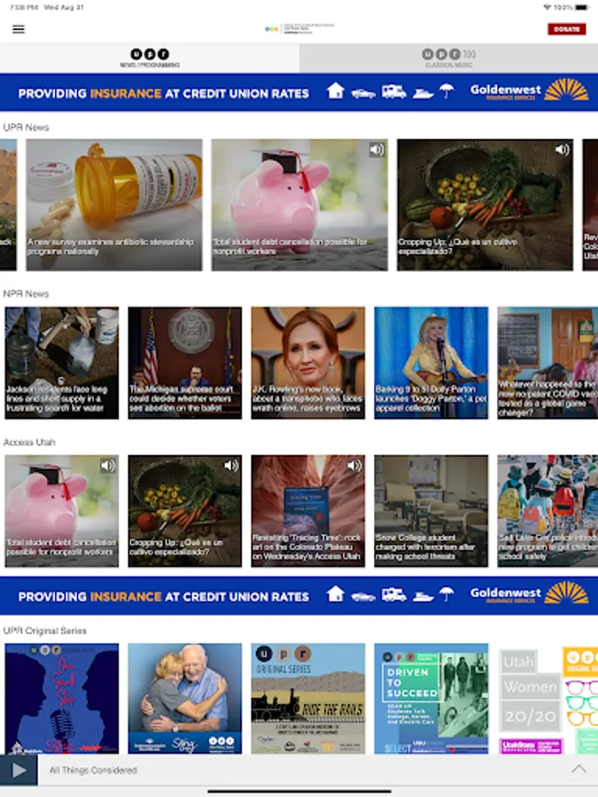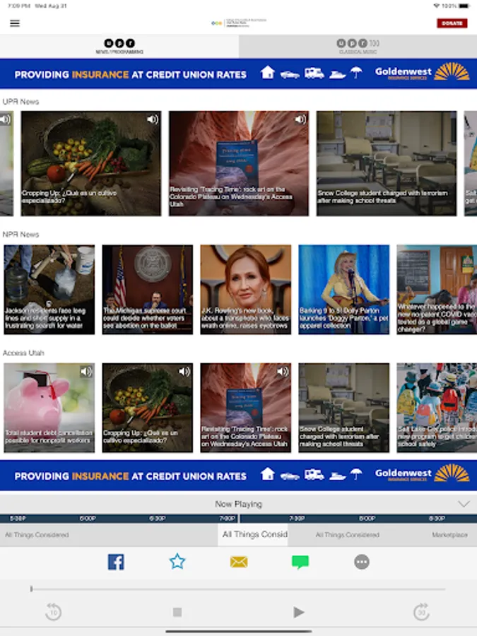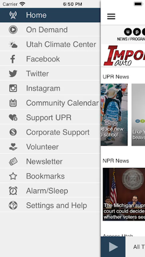The UPR App allows you to listen to Utah Public Radio, pause and rewind the live audio, and view the program schedule for UPR all at once! You can explore On Demand content, search for programs, bookmark a program for later, and wake up to UPR with the alarm clock!
