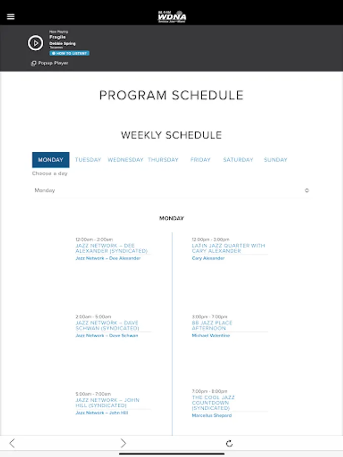Use the WDNA app to stream quality jazz, Latin jazz, blues, classic salsa, reggae, and eclectic music; Check the playlist; Find concerts and events!