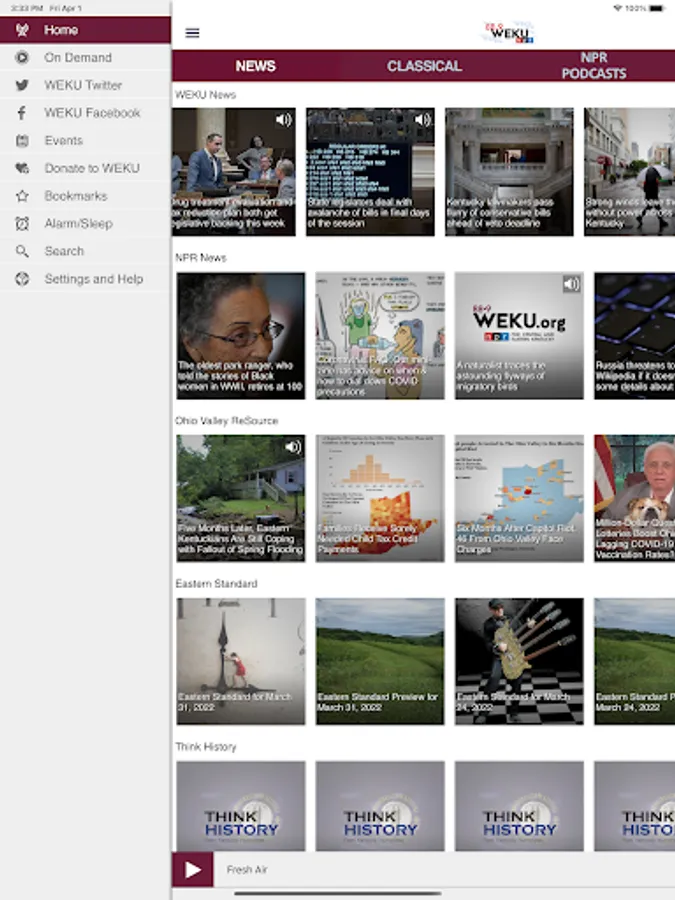 • The WEKU App displays the web page associated with the program or program segment you are listening to On Demand so you can explore for more information.