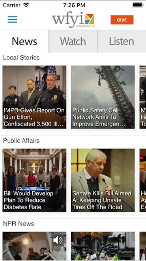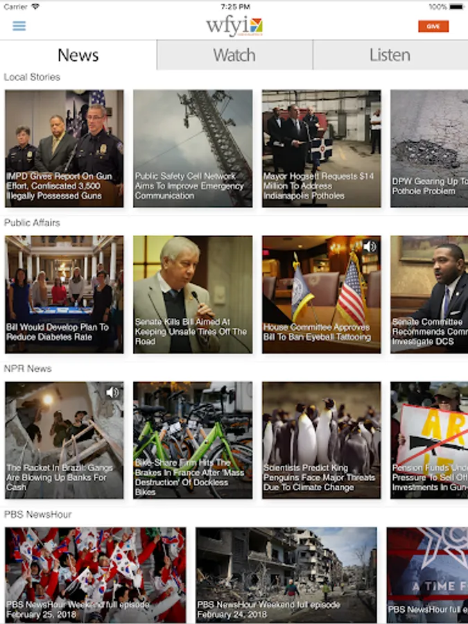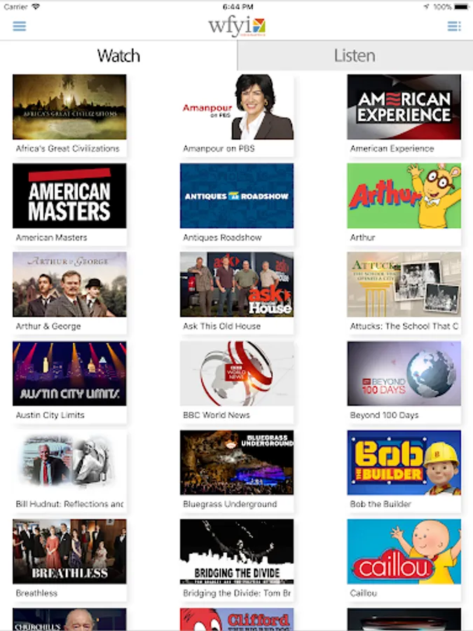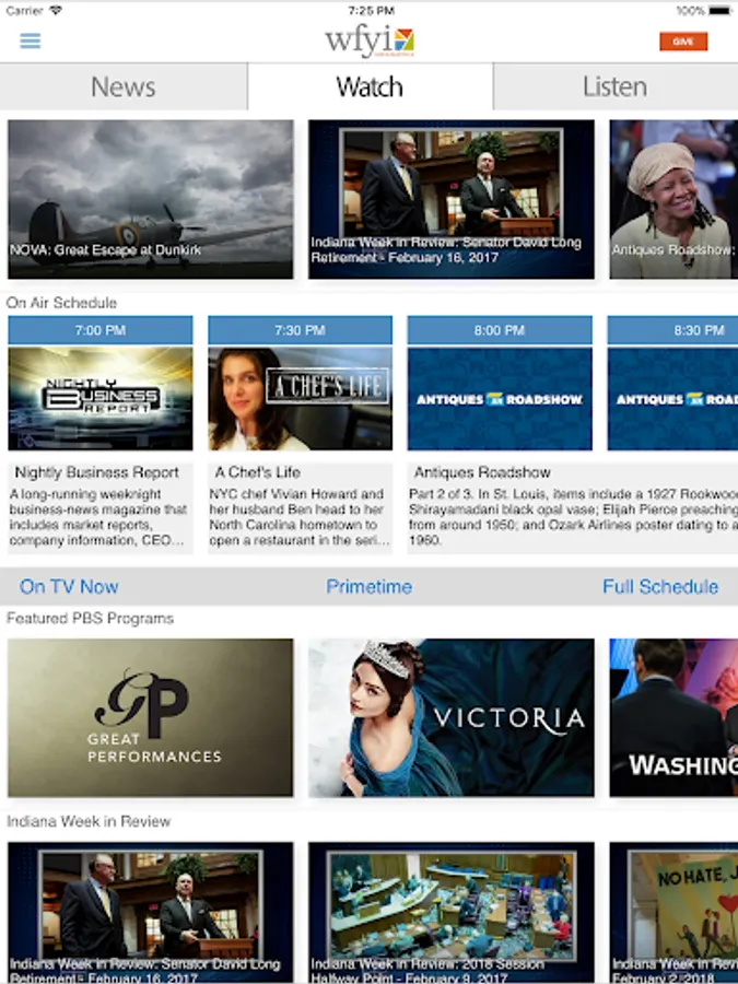 The WFYI mobile app is all you need to stay connected to the content you love from WFYI, NPR and PBS. It’s designed to give you instant access to stories from the award-winning WFYI News team; local documentaries like “Attucks: The School That Opened a City” and “Scammed: Investment Fraud Revealed;” “Morning Edition” from NPR; “Daniel Tiger’s Neighborhood” from PBS KIDS; “Victoria” from Masterpiece and so much more! Simply put, this app offers the most convenient way for you to stay informed and entertained wherever you go with the trusted brands of WFYI, PBS and NPR.