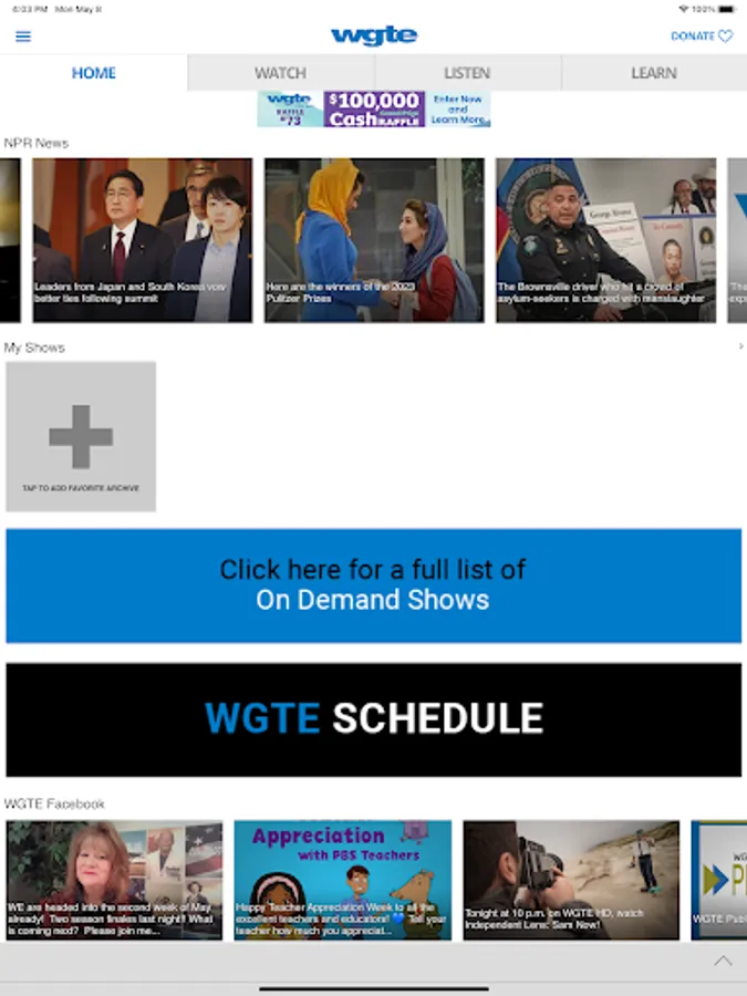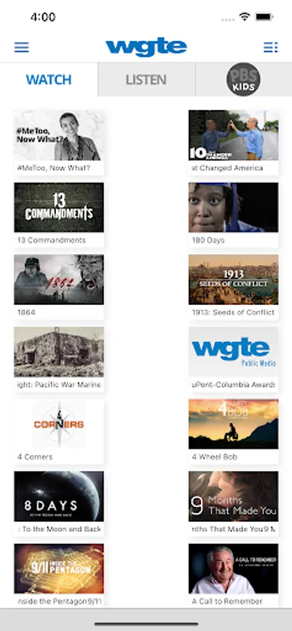 The app provides on-demand content of your favorite shows, the ability to listen to WGTE FM 91 live, easy access to the TV and radio schedules, PBS Kids! content with parental controls, local podcasts, national NPR content plus the ability to explore additional content!